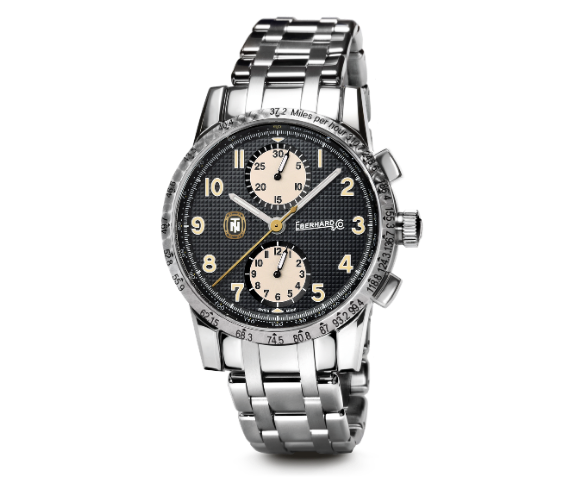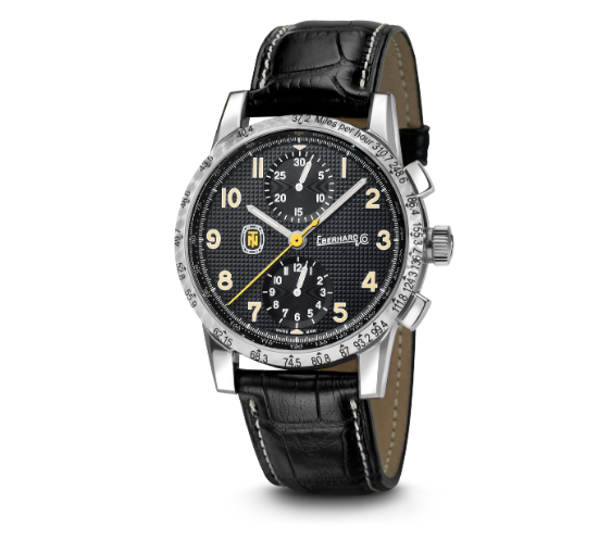 Eberhard & Co. continues to celebrate the motorsport legend with a chronograph featuring a 40 mm case and a sophisticated Clous de Paris dial—a three‑dimensional pyramid‑motif texture that adds depth and dynamism to the surface. Rich in details evoking the world of vintage racing, such as the “perlage” finished bezel and the miles‑per‑hour scale, the timepiece is distinguished by the “TN” symbol within the tortoise emblem—the driver’s iconic lucky charm—and by the central hand in yellow or gold. The timepiece is available with a steel bracelet, an alligator leather strap, or a distinctive gray suede‑effect fabric strap with contrast stitching.