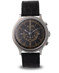 The timepiece is powered by a mechanical hand-wound chronograph movement, calibre EB 1600 16’’’, featuring a mechanical device that allows the chronograph to be temporarily stopped and restarted without resetting to zero, thanks to the presence, at 4 o’clock, of a sliding pusher: a distinctive hallmark of Eberhard & Co. timepieces from that period. The 2 o’clock pusher controls the start, stop, and reset functions of the chronograph.