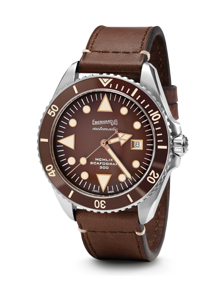 Scafograf 300 MCMLIX, the celebratory model of the iconic 1959 collection, is proposed in an updated version with a brown dial and bezel enriched with peculiar golden details. Features that give this sports watch an unmistakably elegant appearance.