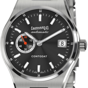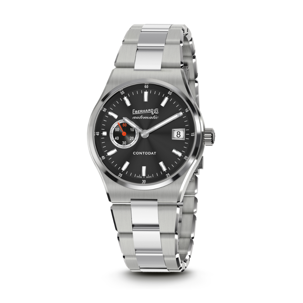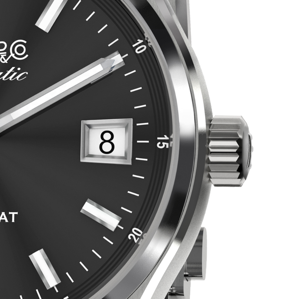 DATE WINDOW AT 3 O’CLOCK, OF DISTINCTIVE TRAPEZOIDAL SHAPE, WITH APPLIED FRAME.