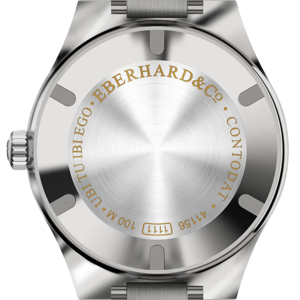 SCREW-IN STEEL CASEBACK WITH CENTRAL SATIN-FINISHED, polished on the perimeter and personalised with golden engravings and the Latin phrase “UBI TU IBI EGO”