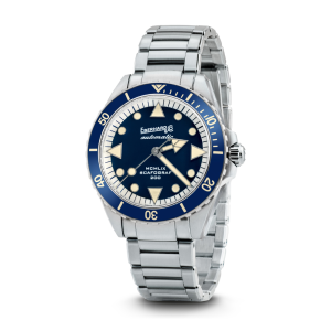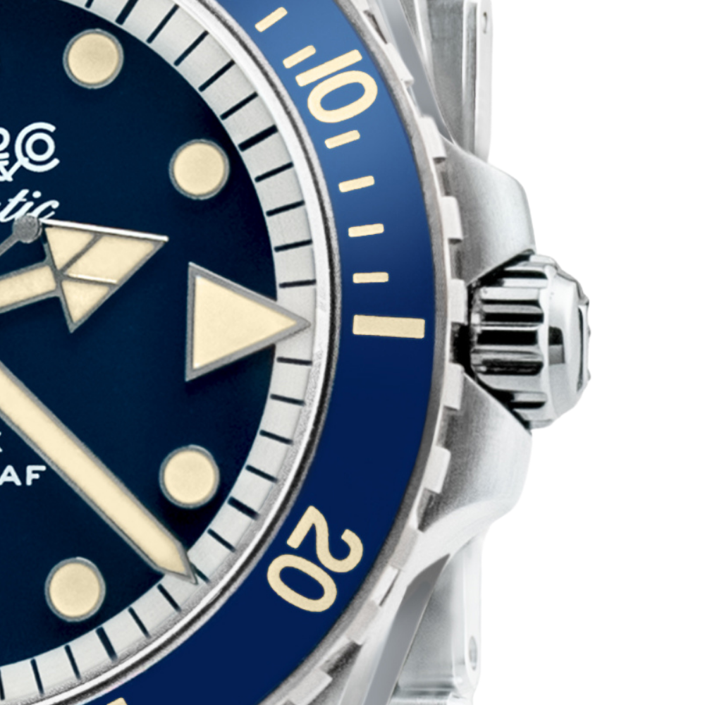 UNIDIRECTIONAL ROTATING BEZEL WITH CERAMIC INSERT AND VINTAGE LUMINESCENT MARKINGS ON THE FIRST 15 MINUTES SCALE