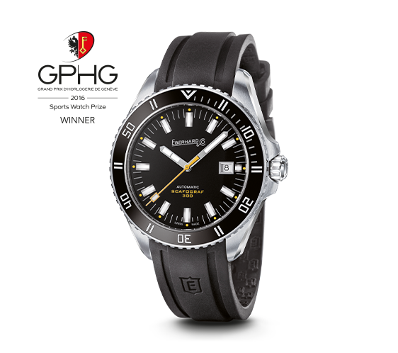 MATT BLACK DIAL, “GALBÉ” WITH LUMINESCENT APPLIED INDICES AND YELLOW DOTS.