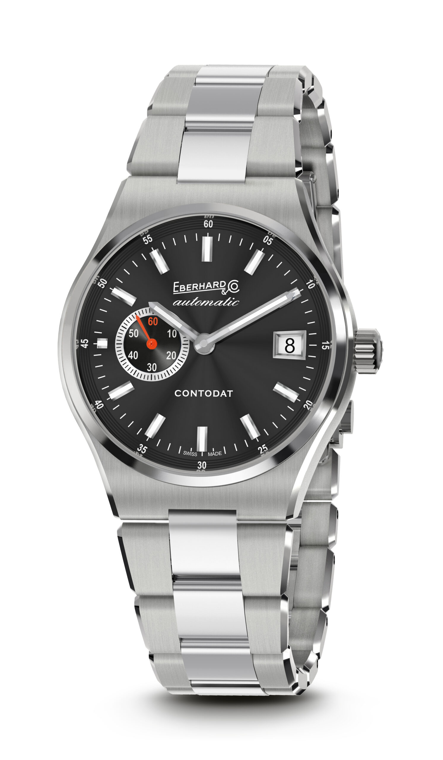 BRACELET EN ACIER intégré au boitier, avec alternance entre finition satinée et polie