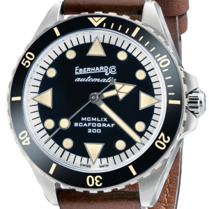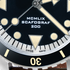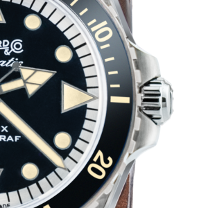 LUNETTE AVEC INSERT EN CÉRAMIQUE, TOURNANTE, UNIDIRECTIONNELLE AVEC LUMINESCENCE VINTAGE SUR LE PREMIER QUART DE L’ÉCHELLE DES MINUTES