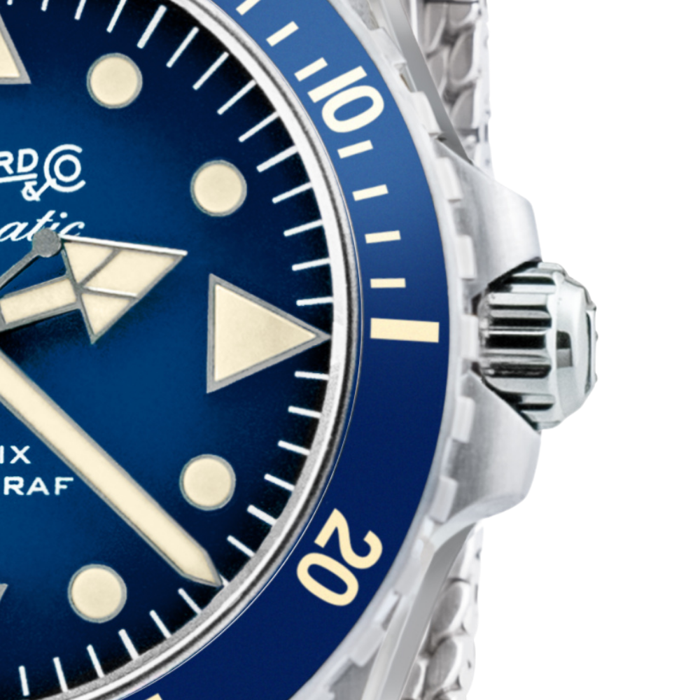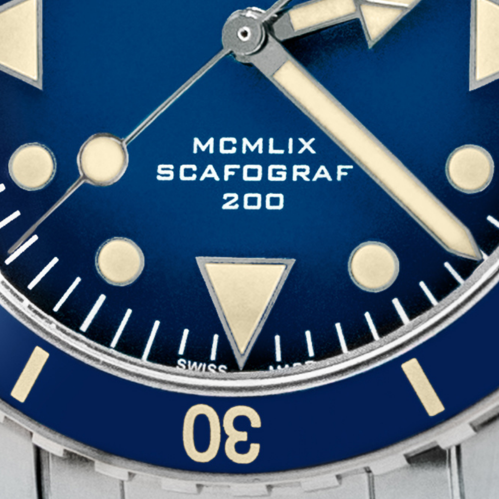 LUNETTE AVEC INSERT EN CÉRAMIQUE, TOURNANTE, UNIDIRECTIONNELLE AVEC LUMINESCENCE VINTAGE SUR LE PREMIER QUART DE L’ÉCHELLE DES MINUTES