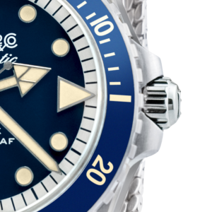 cadran bleu mat avec chemin des minutes argenté à finition satinée circulaire