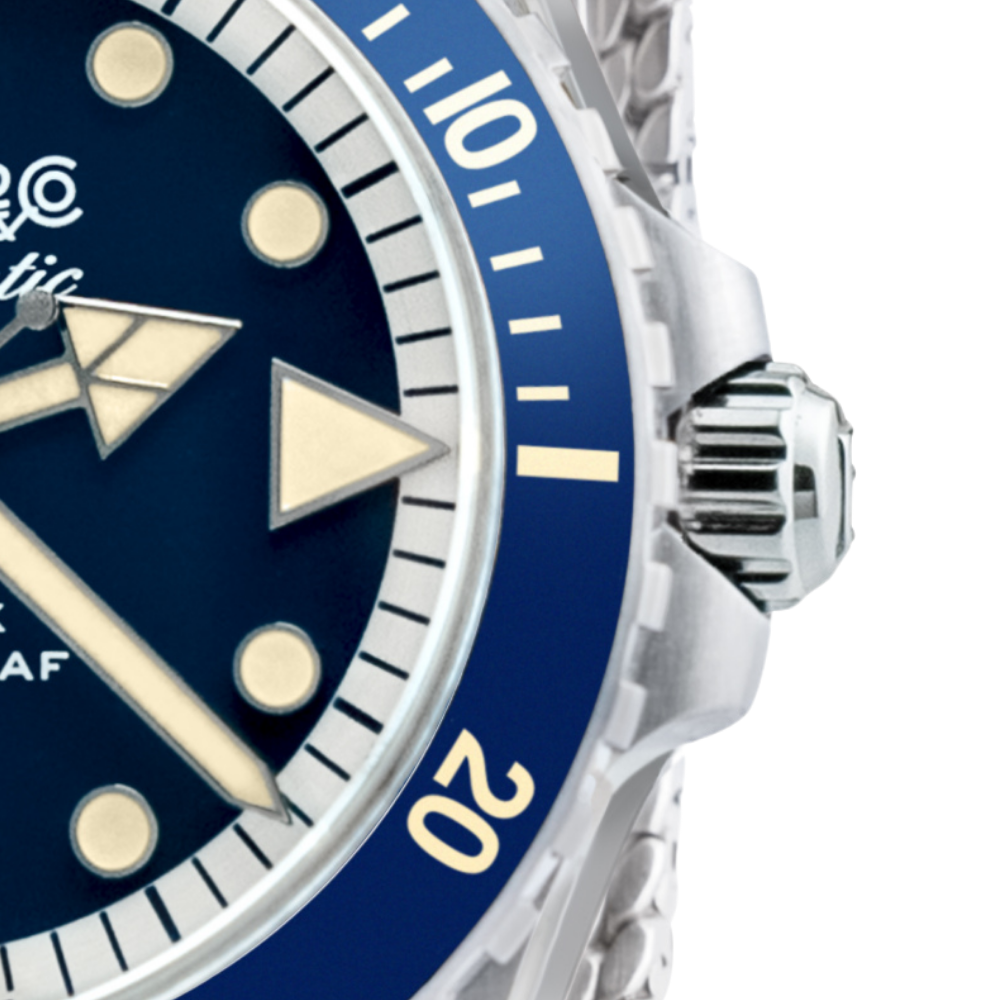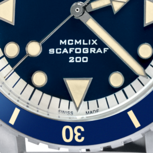 LUNETTE AVEC INSERT EN CÉRAMIQUE, TOURNANTE, UNIDIRECTIONNELLE AVEC LUMINESCENCE VINTAGE SUR LE PREMIER QUART DE L’ÉCHELLE DES MINUTES