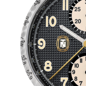 carapace stylisée (porte-bonheur de Tazio Nuvolari) accompagné des initiales TN à 9 h