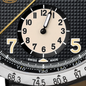 Mouvement avec finition esthétique raffinée, décor Côtes de Genève, 25 rubis – 16 vis bleuies. Sur la masse oscillante, reproduction en or 18 ct de Tazio Nuvolari au volant de l’Alfa Romeo Tipo C