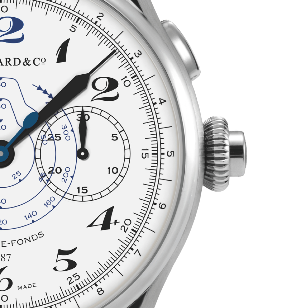 CHRONOGRAPHE 1887 AUTOMATIQUE È UN SEGNATEMPO ESCLUSIVO CHE UNISCE L’EXPERTISE CONTEMPORANEA DELLA MAISON E LO STUDIO DEI CRONOGRAFI EBERHARD & CO. DEGLI ANNI ’30 E OLTRE. IL CRONOGRAFO È ANIMATO DALL’ESCLUSIVO CALIBRO EB 380, SULLA CUI STRUTTURA È STATO EFFETTUATO UN SOFISTICATO LAVORO DI PERSONALIZZAZIONE: TRA GLI INTERVENTI, SPICCA LA CREAZIONE DI UNA LEVA PER IL DISLOCAMENTO DEL PULSANTE DI AZZERAMENTO COASSIALMENTE ALLA CORONA.